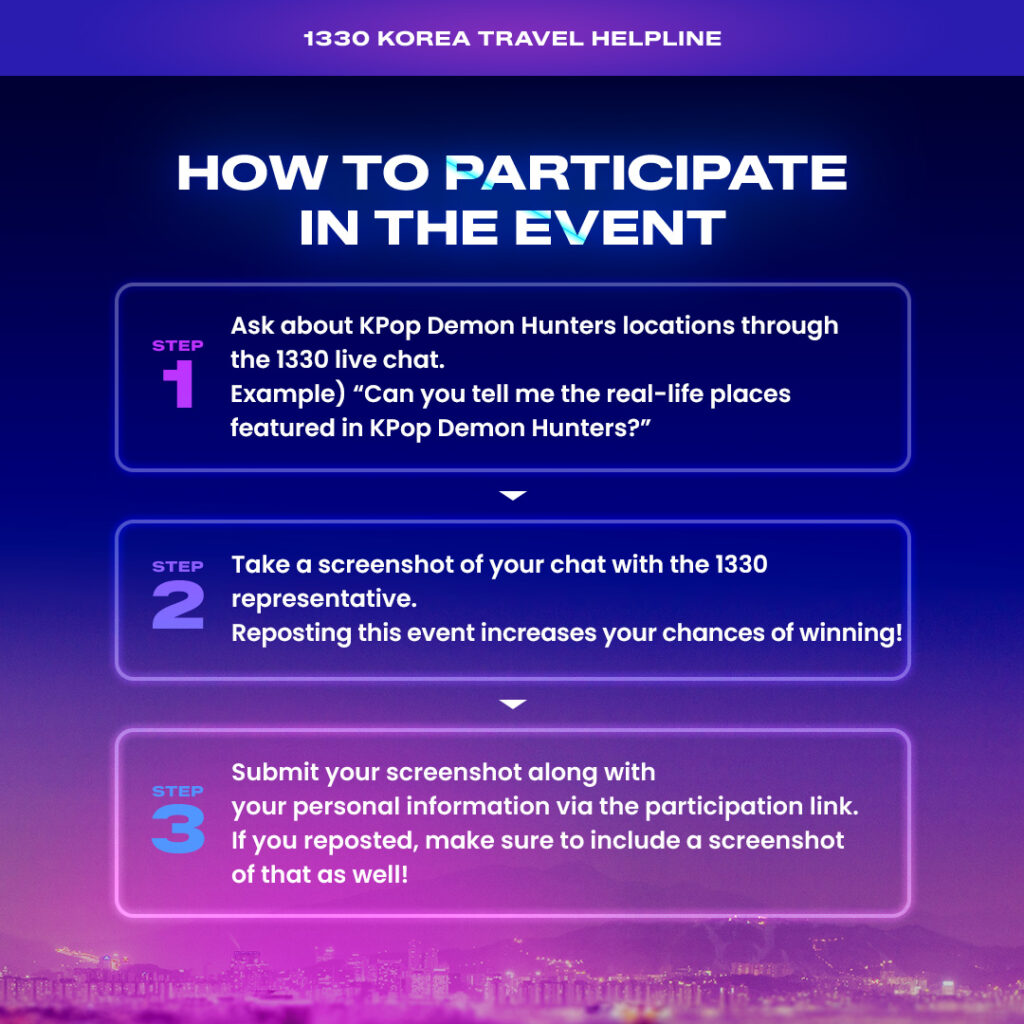 Experience Korea through the lens of KPop Demon Hunters—get details on filming locations, event participation, and 1330 travel chat for a chance to win!